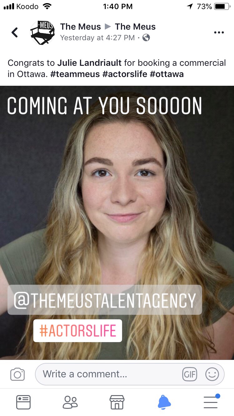 I just got back a couple days ago and I’ve already done a self tape when I was there, a self tape last night and I’m currently on the train to Toronto for an audition. Couple more to do for next week too so I’m definitely taking advantage of this train ride😊